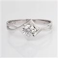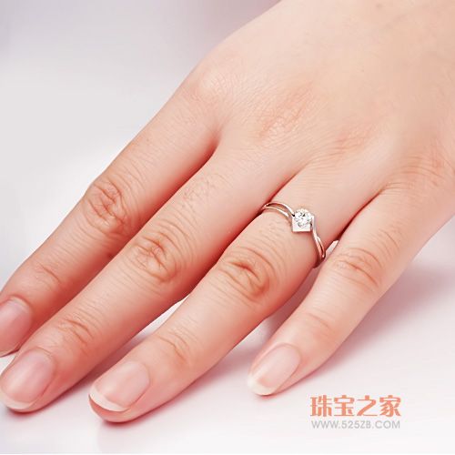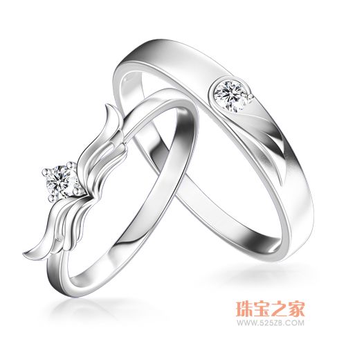 女戒,镶嵌了一颗0.30克拉、H、SI、八箭八心完美切工的天然南非美钻。镂空凸起的白金只为了显现的