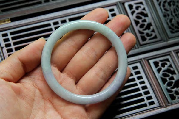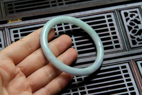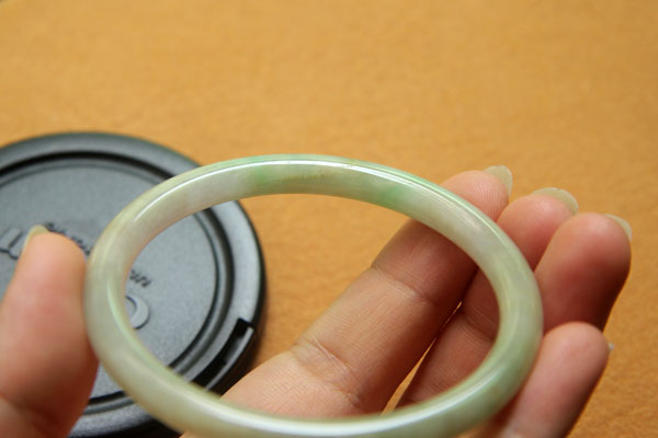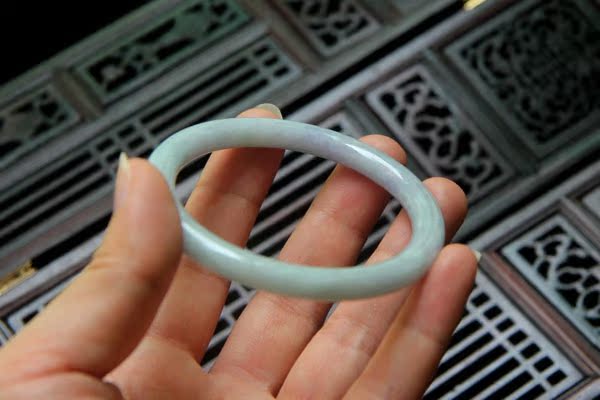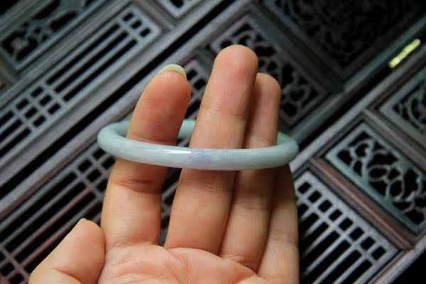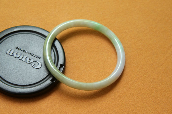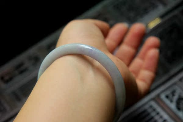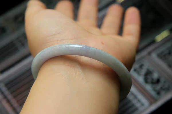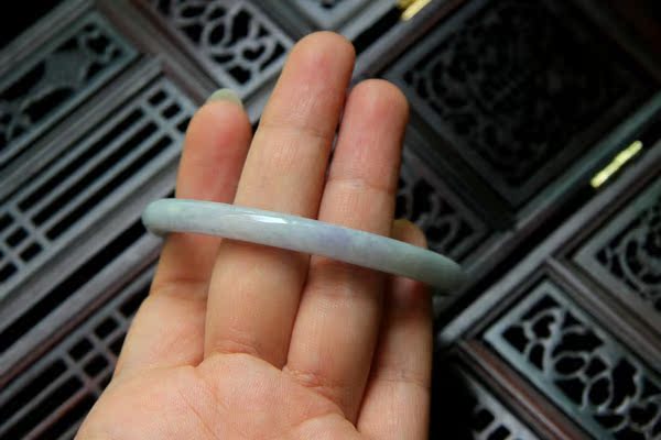 【翡翠描述】--无纹裂,条形漂亮,水头不错,淡绿色,带迷人的蓝紫色,非常漂亮,紫色见光不死,有棉,轻微打磨不平,图片有显示,无大碍,佩戴纤巧迷人。
