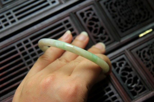 【翡翠名称】--南茜翡翠--三彩古典翡翠圆条手镯56