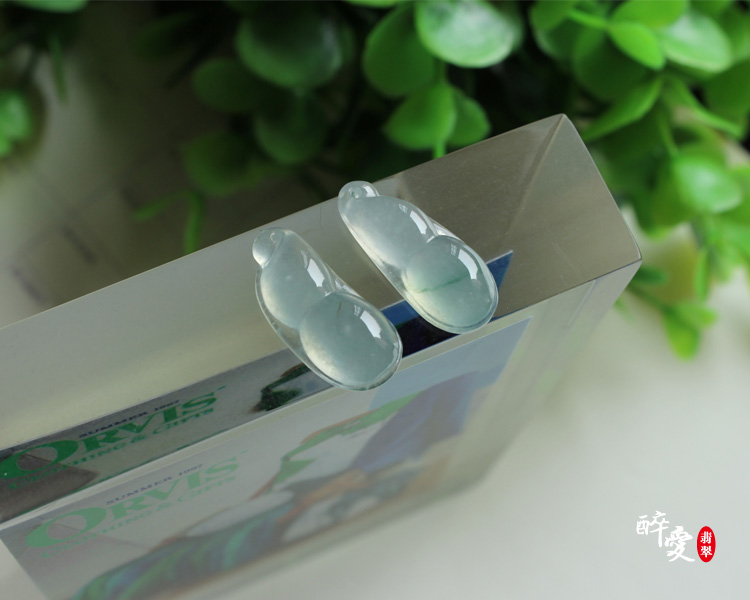 【翡翠名称】-【醉爱翡翠】--淡绿飘花翡翠福豆一对