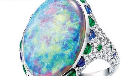 钻石、红宝石、蓝宝石、祖母绿、金绿宝石并称其中。其中欧宝以它绚丽夺目的变幻色彩越来越受到人们的喜爱。由于天然欧泊资源逐渐枯竭,近年来升值非常迅猛。欧泊作为天然宝石中唯一带有变彩效应的佼佼者,它的英文OPAL来源于拉丁文“Opalus”或梵文“Upala”, 意思就是“贵重宝石”或“集宝石之美于一身”。因世界目前95%的欧泊产自澳大利亚,故而被澳大利亚政府选为国石,也有人取其谐音称为“澳宝”。