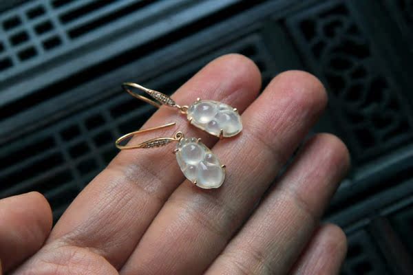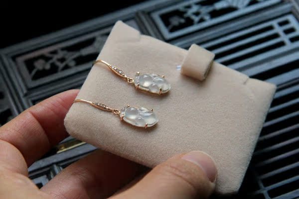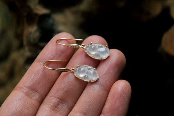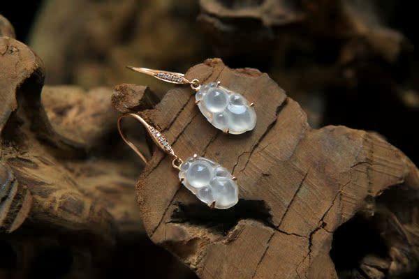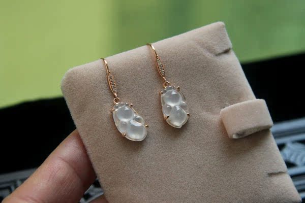 18K玫瑰金钻石冰种翡翠金鱼耳环 2800元