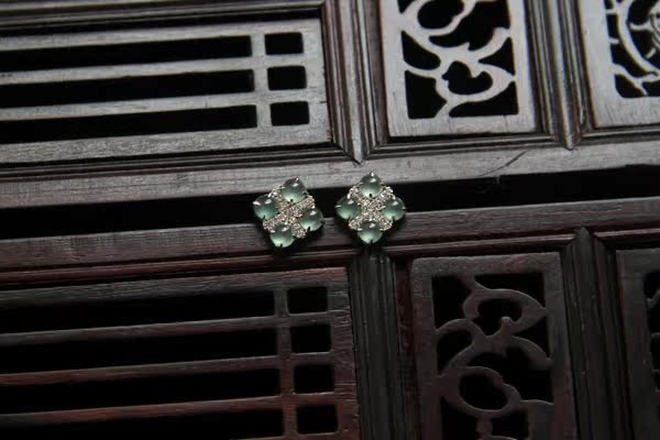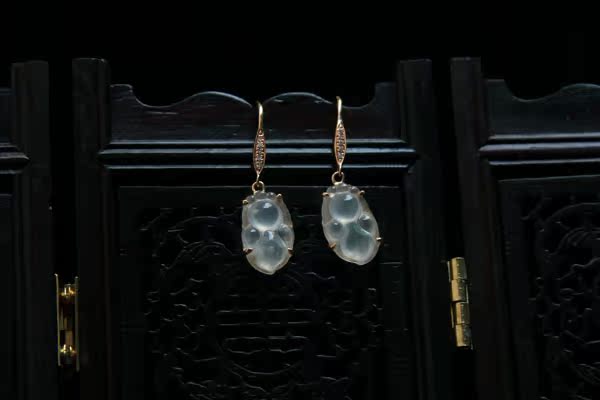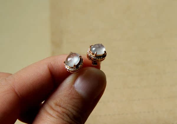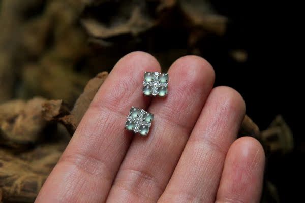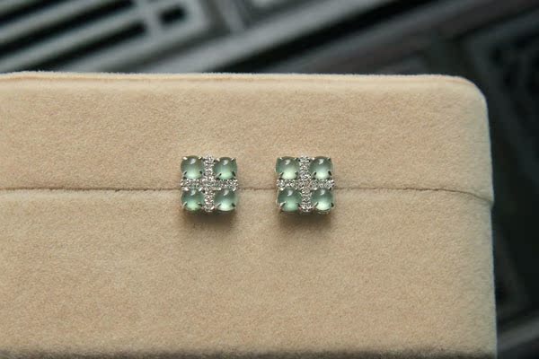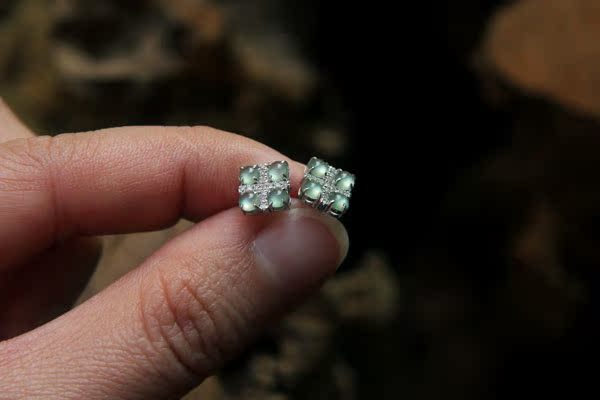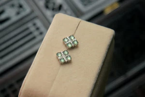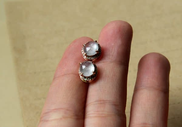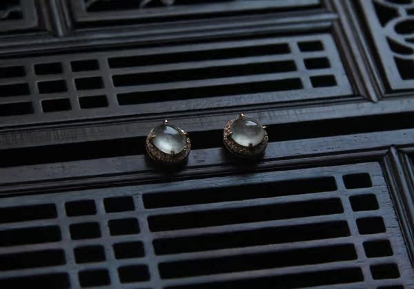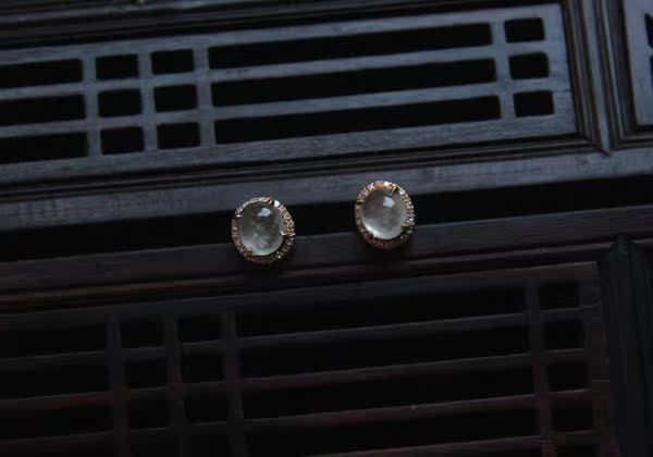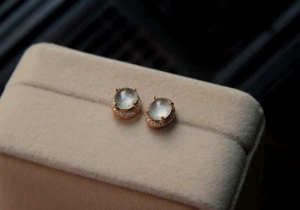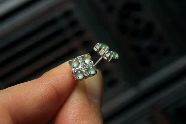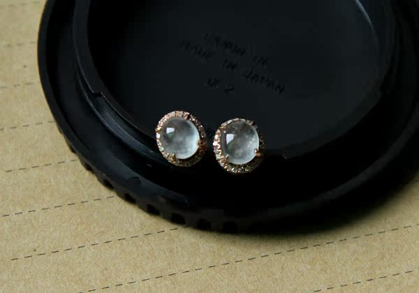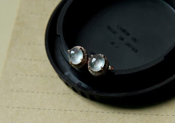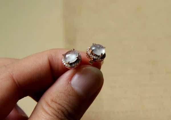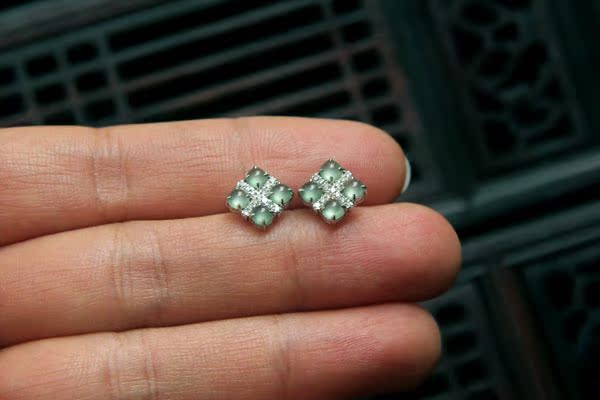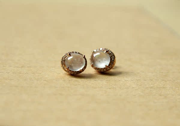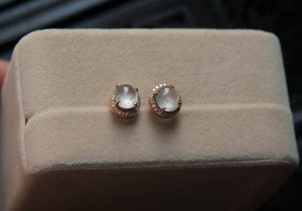 18K白金钻石玻璃种晴水翡翠耳钉 2300元