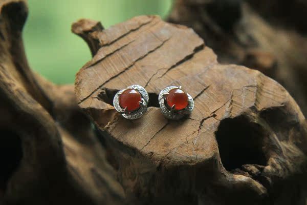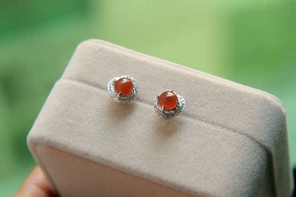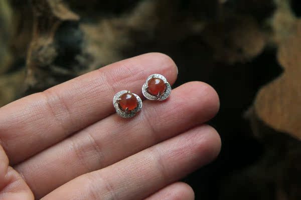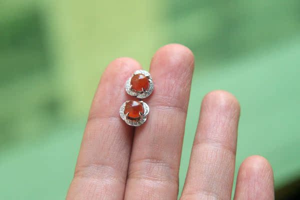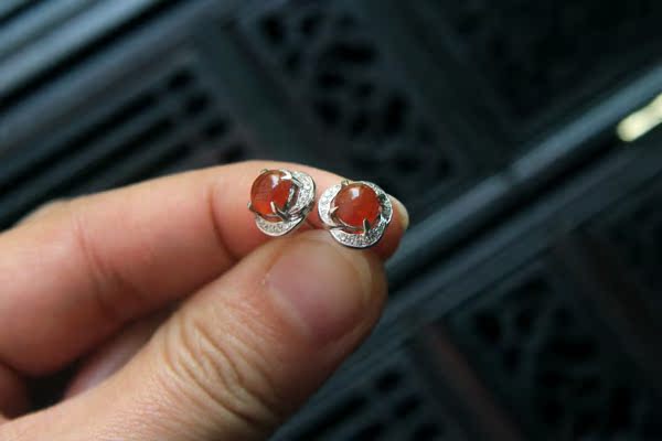 18K白金镶天然南非钻石,蛋面无纹裂,褐红,满色,种水都好,饱满起光,质地细腻,稍有色筋,可以忽略,款式大方经典耐看,佩戴效果非常好!图片轻微上相,实物也是艳丽漂亮的。