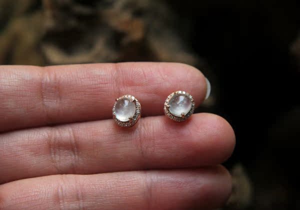18K白金镶天然南非钻石,晴水蛋无纹裂,轻微棉,玻璃种,荧光强,款式经典大方,佩戴效果非常好,店主大爱!蛋面虽小,品质非常好,大小均匀,颜色一致,配对难度高。