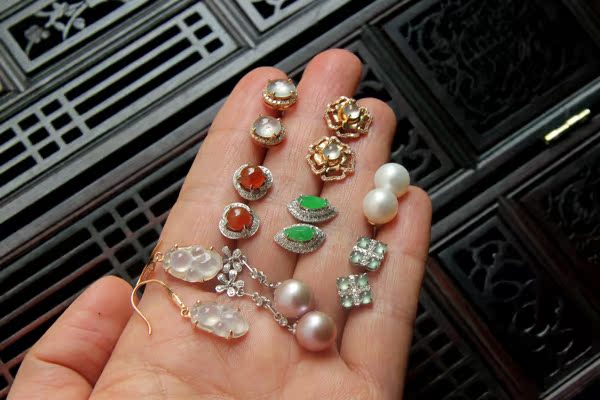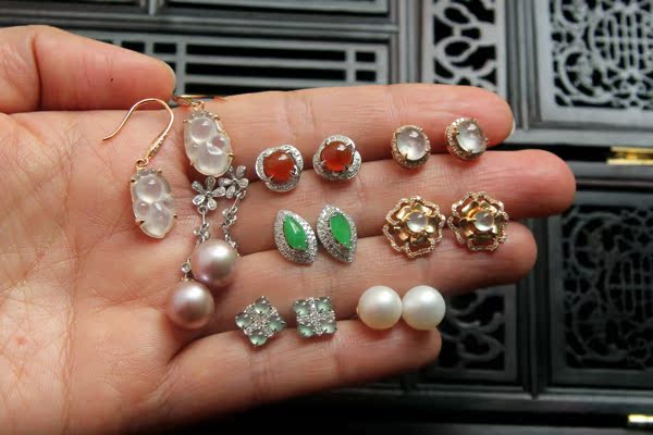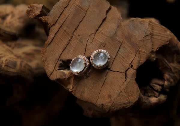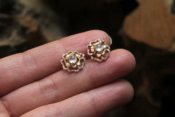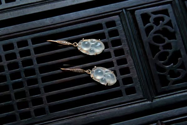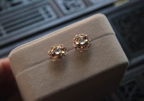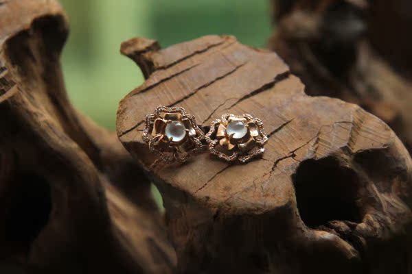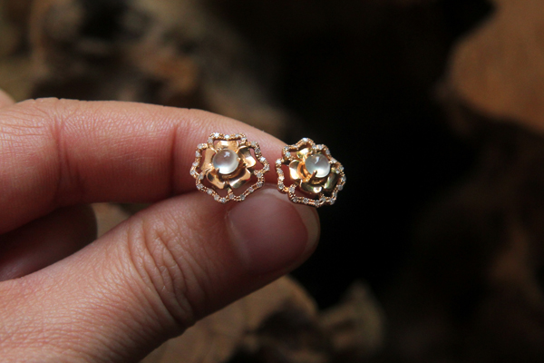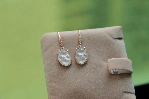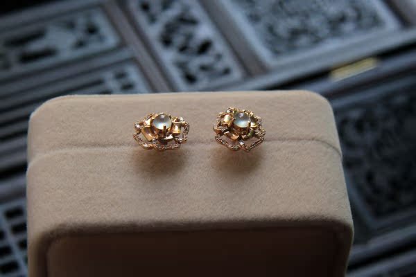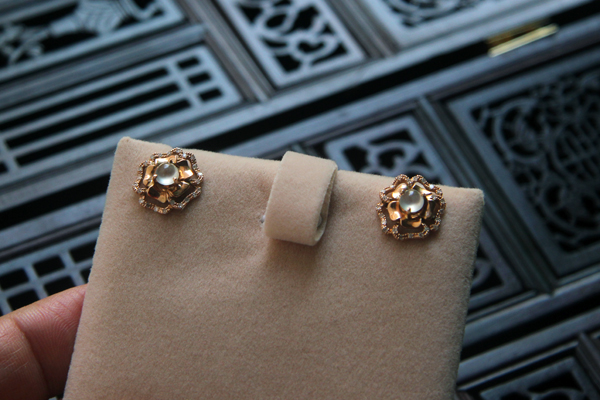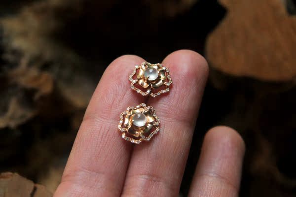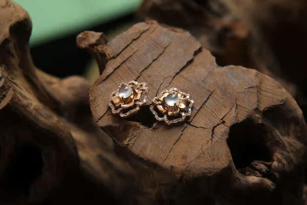 翡翠耳环/玫瑰花耳环/18K玫瑰金镶白蛋耳环 2200元