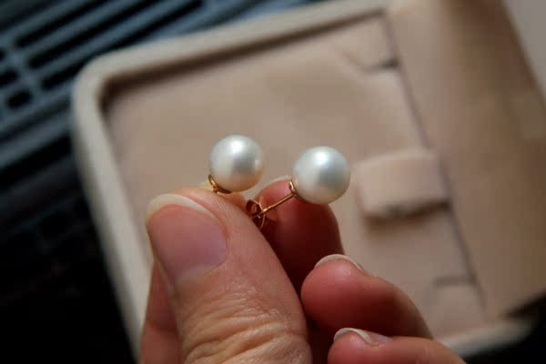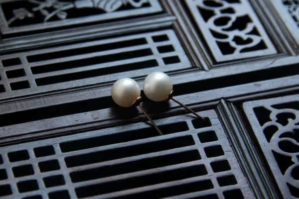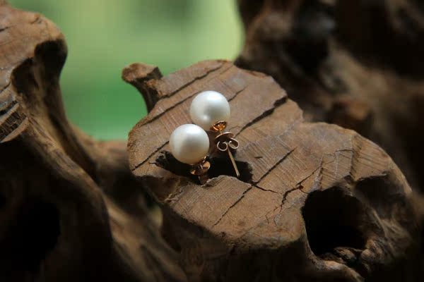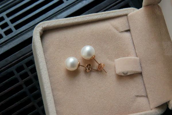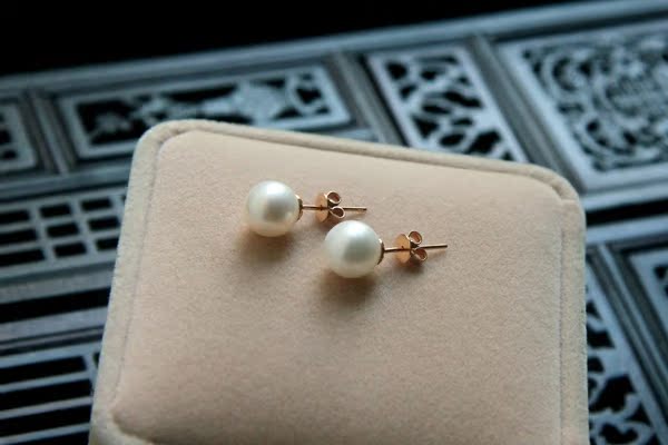 18K玫瑰金镶天然淡水珍珠,珠子正圆,微微微瑕,珠白光度好,款式经典大方,佩戴效果非常好!