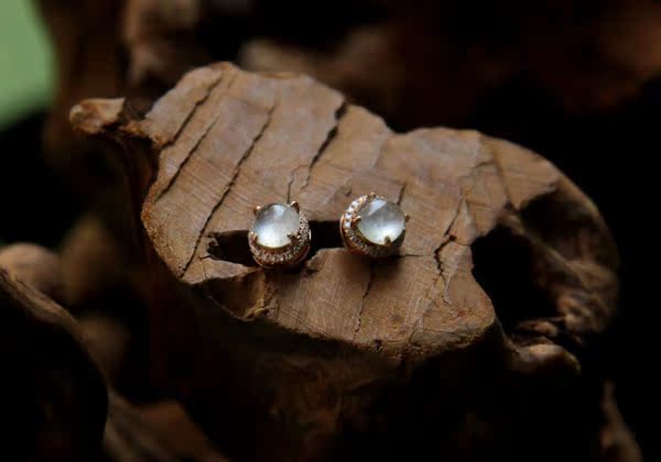 18K玫瑰金钻石雪花白蛋耳钉 2380元