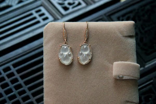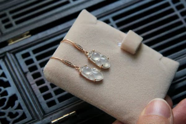 18K玫瑰金镶天然钻石,白蛋无纹裂,种老水头好,白净,起荧光,玉质柔和,水灵,飘的雪花棉非常迷人,意境非常好,佩戴效果非常迷人。