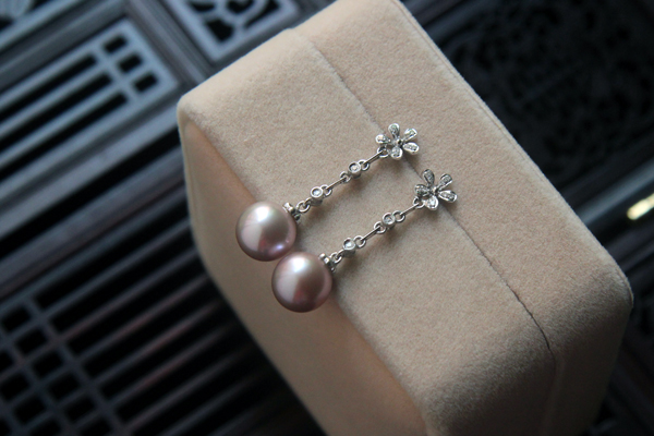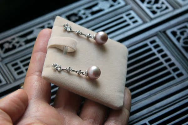 18K白金镶天然南非钻石,天然淡水珍珠,珠子正圆,微微微瑕,紫珠,颜色漂亮,光度好,款式经典大方,佩戴效果非常好,非常优雅迷人!实物更漂亮,店主大爱!
