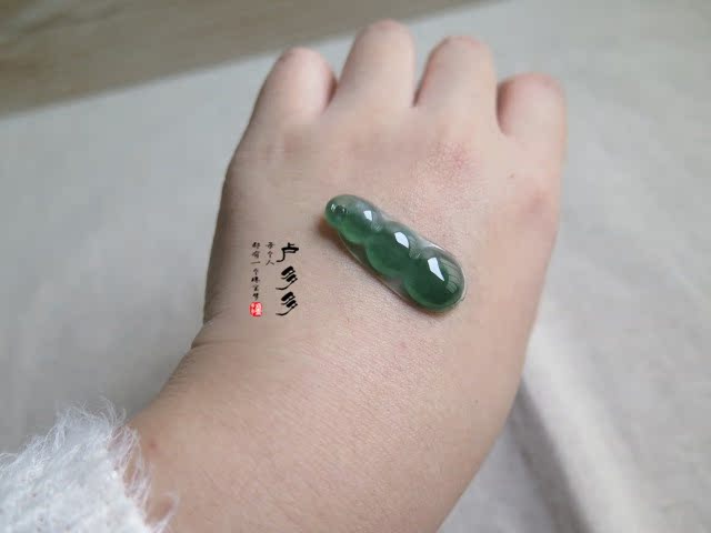 【描述】- 小瓜瓜,倒数3张看到底部有几条细小的内纹,倒数2张看到有条棉纹,不影响佩戴哦,不透光看不出来,实物颜色不错。