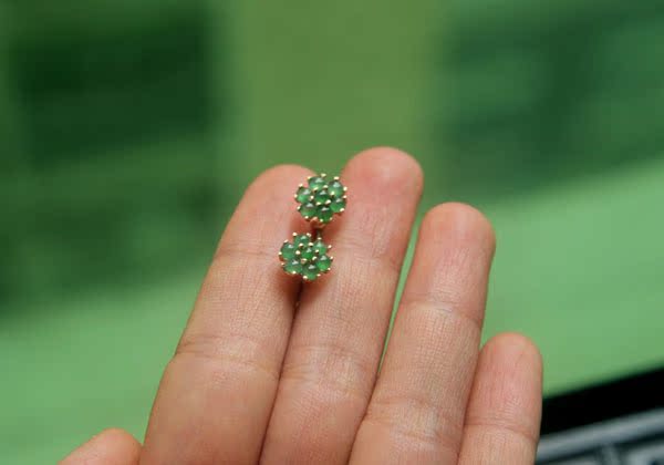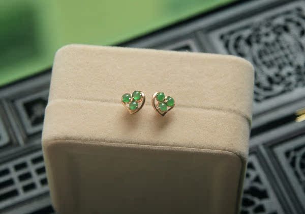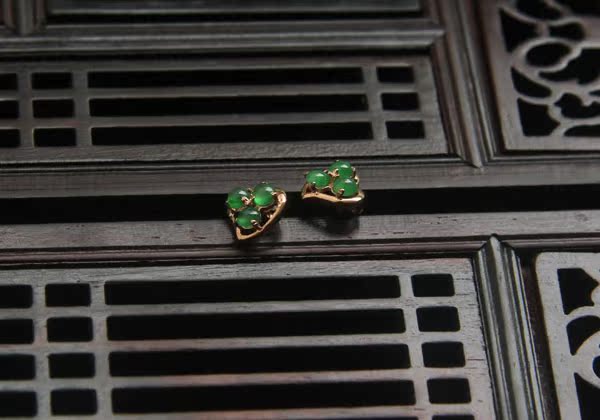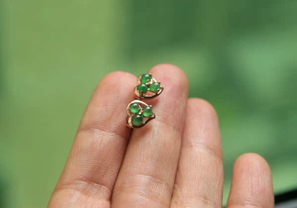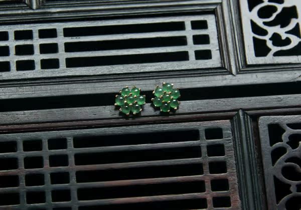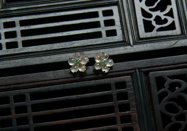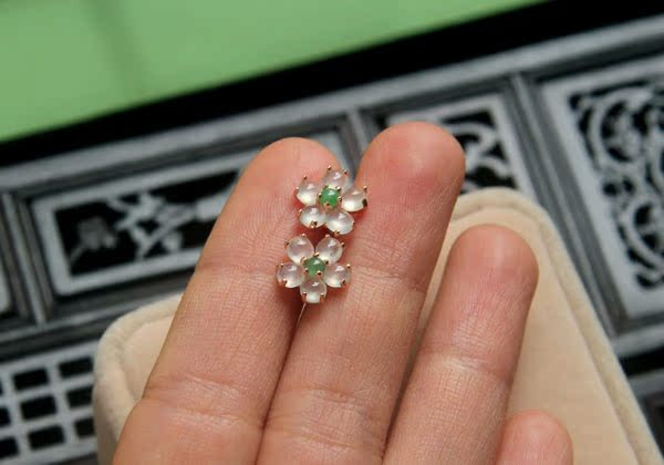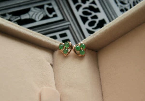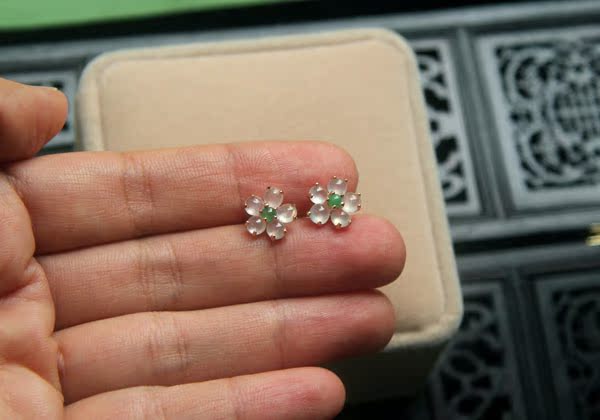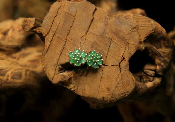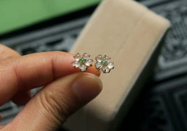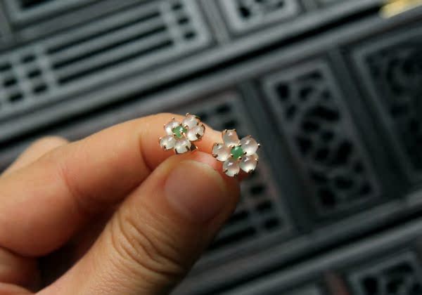925银镀玫瑰金冰绿翡翠小花耳环 520元