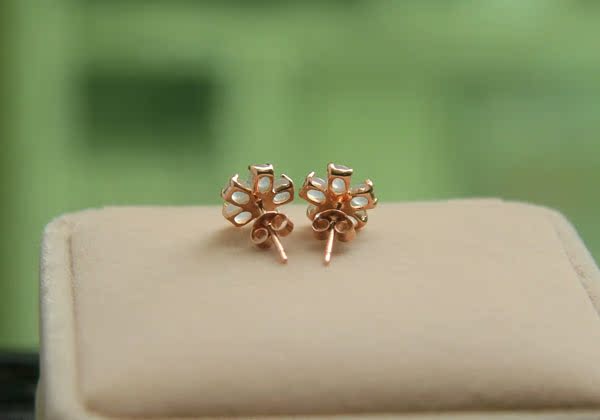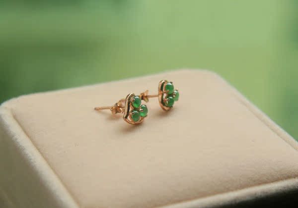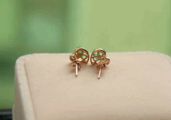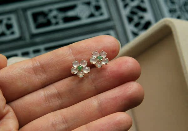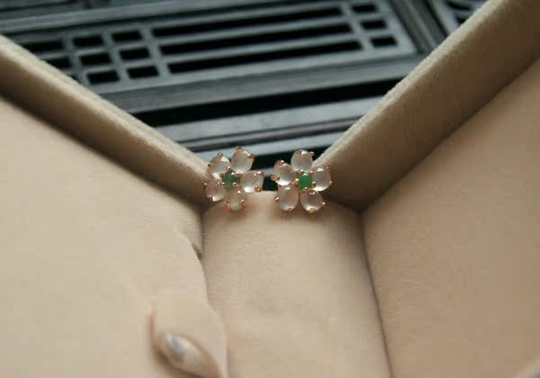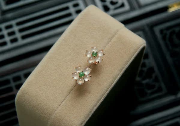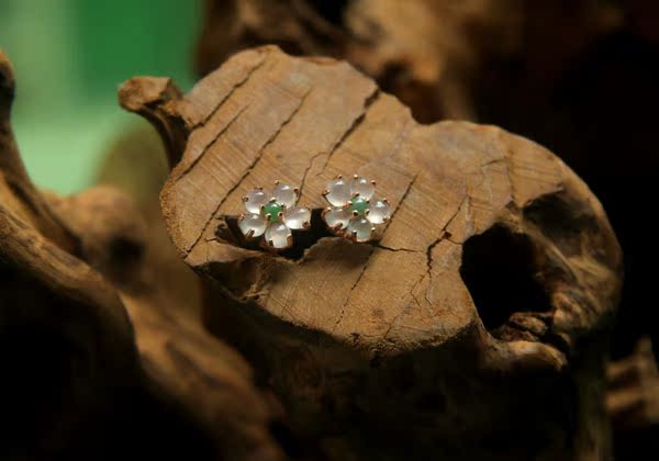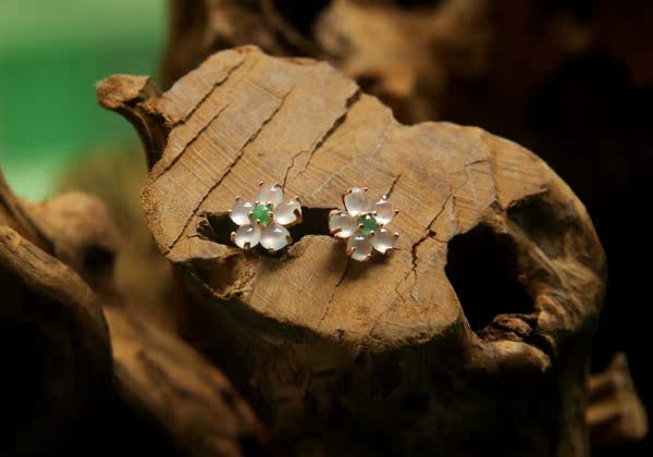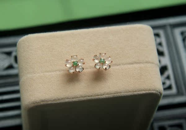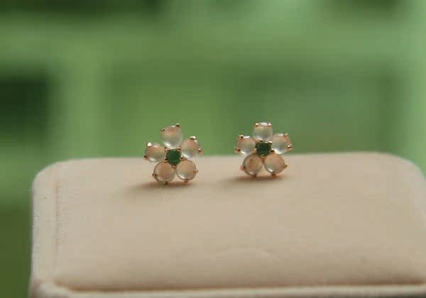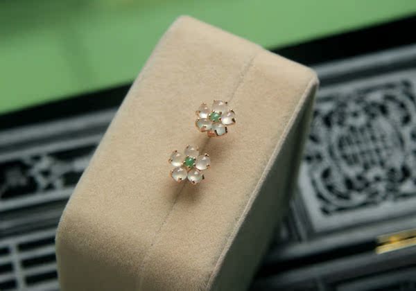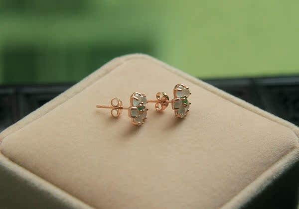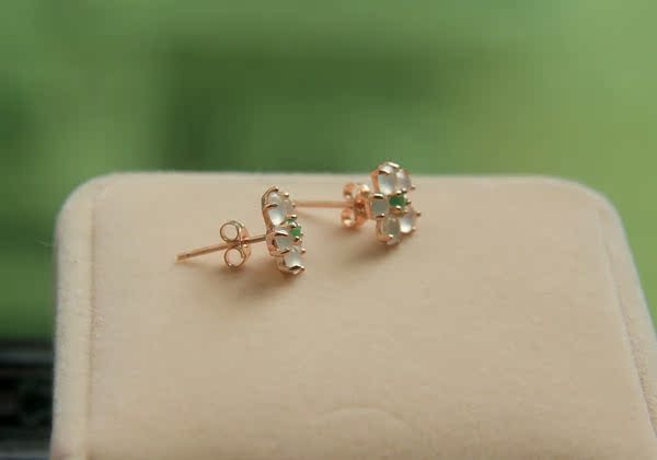 925银镀玫瑰金冰绿翡翠小花耳环 530元