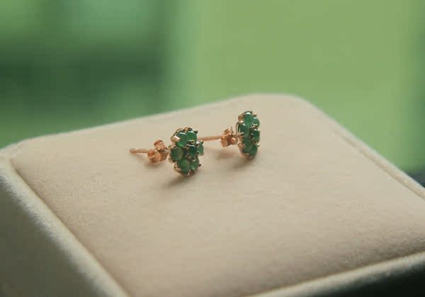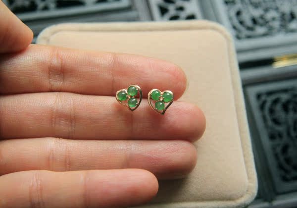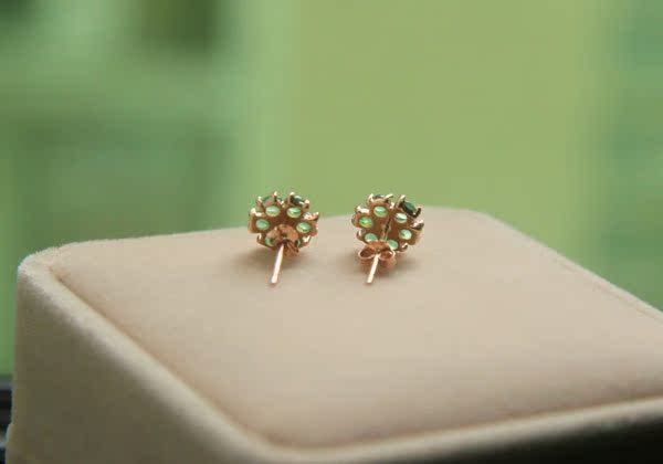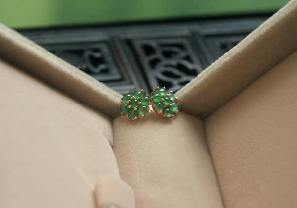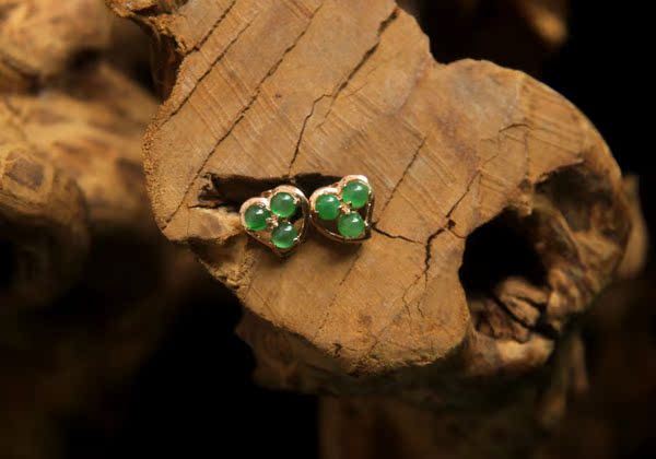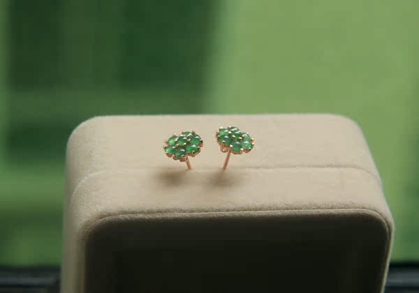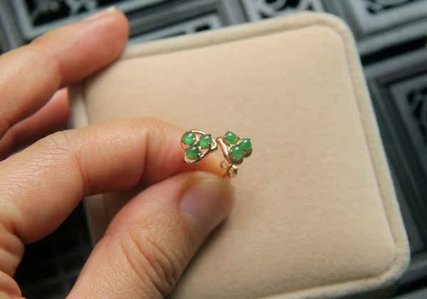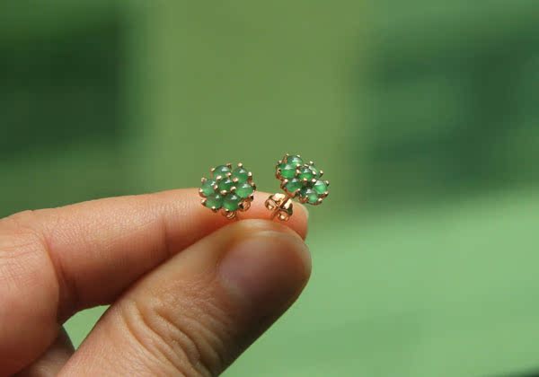 925银镀玫瑰金冰绿翡翠小花耳环 680元