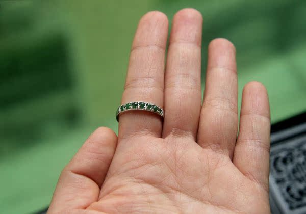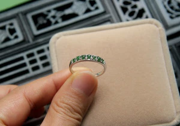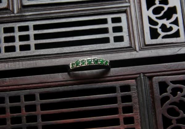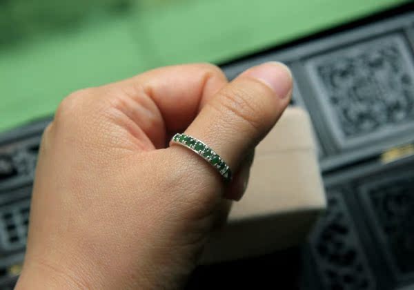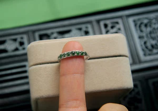 925银镀白金翡翠小绿蛋排戒指,冰种深绿色,蛋面颜色不是非常一致,种水都不错,个别有纹,无大碍,款式经典,佩戴效果很好,圈号稍大,可以作拇指戒,特价!非常超值!
