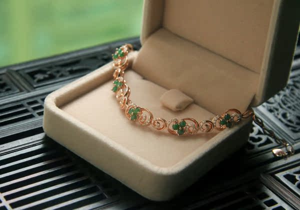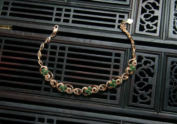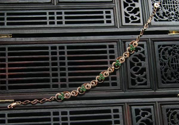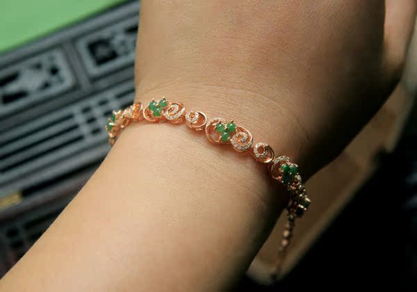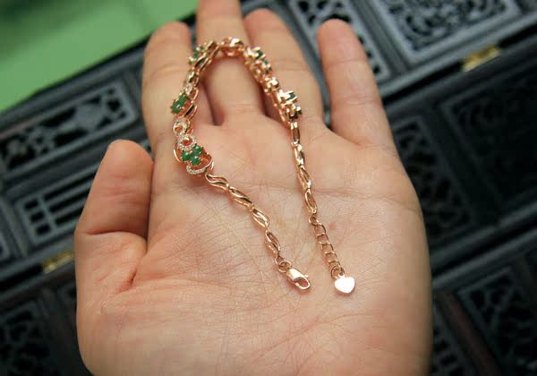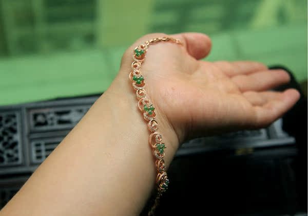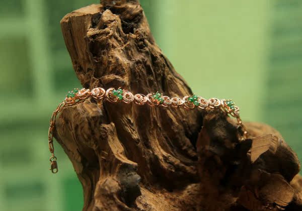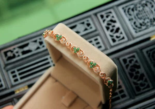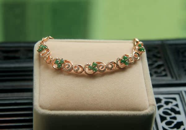 925银镀玫瑰金冰绿翡翠小蛋手链 1380元