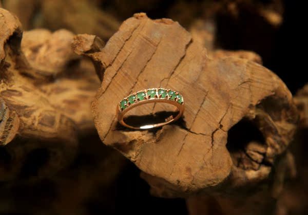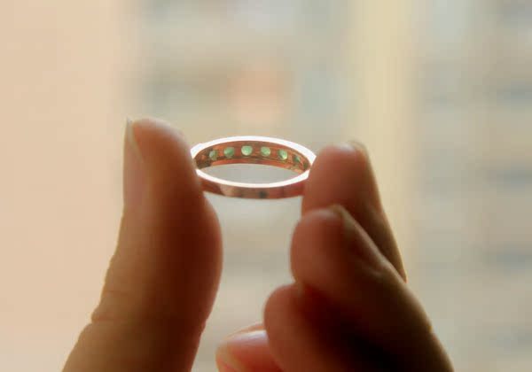 925银镀玫瑰金甜绿翡翠小蛋排戒指 280元
