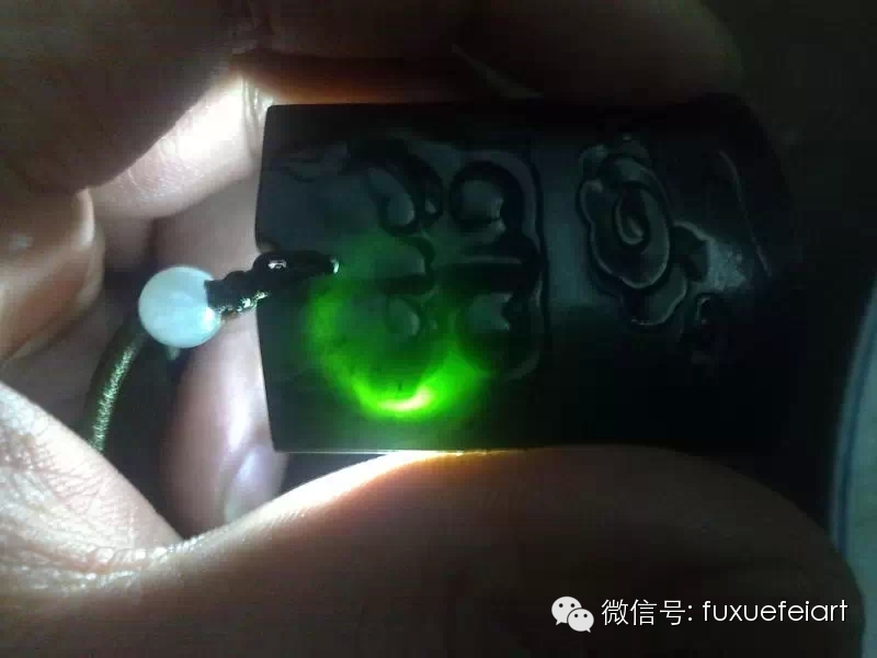 黑碧玉原石和黑碧玉成品牌子透光图。可以和楼上的黑卡瓦透过图片对比。进光明显区别很大
