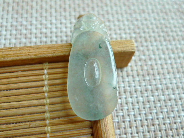 【简介】-无裂纹,有存在天然小石纹,玉质细腻水头足,雕工精湛,色泽好带阳绿,有孔,上身效果好