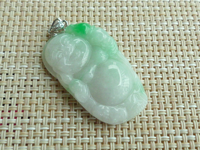 【名称】-天然缅甸翡翠a货一口价老坑冰糯种18K金镶钻飘阳绿笑佛公吊坠批发 送证书6683【价格】-【尺寸】-包金长裸石长宽厚46.0*23.2*6.3mm 【证书】-G1605411-2196683 【重量】-10.16g 【简介】-完美无纹裂,玉质细腻种水好水头足,形体佳色泽好,有孔,18K金镶钻上身效果好 【原料产地】-缅甸。翡翠加工地:中国玉都,揭阳阳美【邮寄费用】-统一发顺丰快递,满1000元起包顺丰快递,不满条件的需要补拍10元运费,港澳台需要补20元运费!顺丰不到的请告知,帮您改发其它快递喔^^【鉴定证书颁发机构】-[请以收到的证书为主]【商品链接】-http://item.taobao.com/item.htm?spm=a1z10.1-c.w5003-10751192907.2.hSQd3G&id=44972686616&scene=taobao_shop