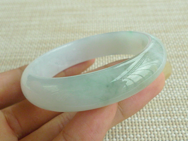 【名称】-天然缅甸翡翠a货一口价老坑冰糯种浅绿宽版手镯玉镯批发 送证书5136