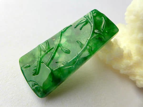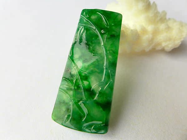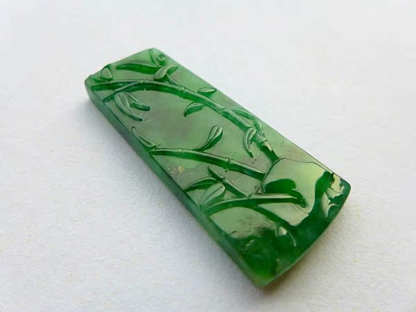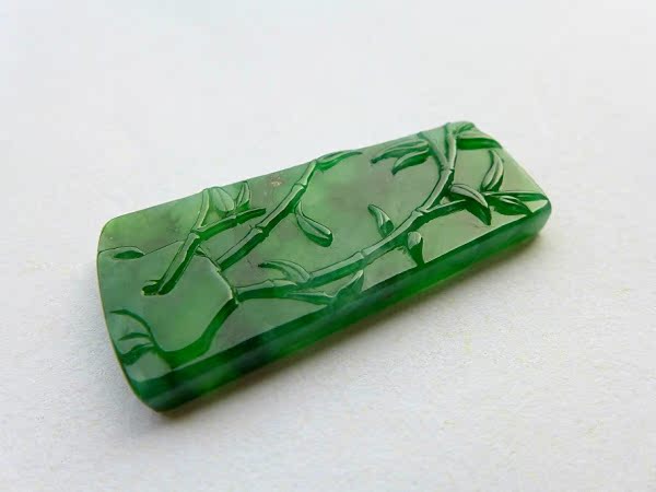 【翡翠名称】:老坑冰种辣阳绿翡翠竹报平安挂件