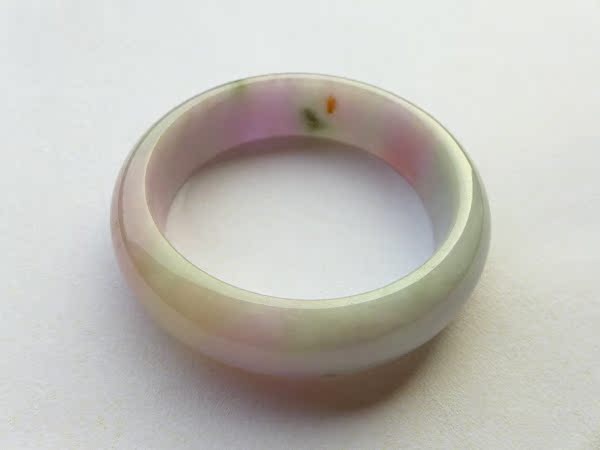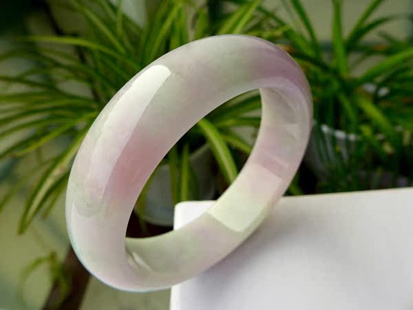 【翡翠名称】:紫罗兰春带彩翡翠手镯 缅甸翡翠饱满玉手镯 A货翡翠手镯水头好