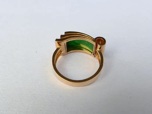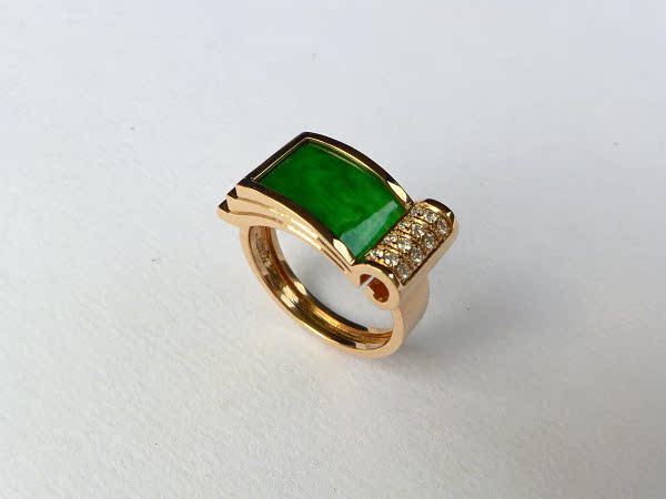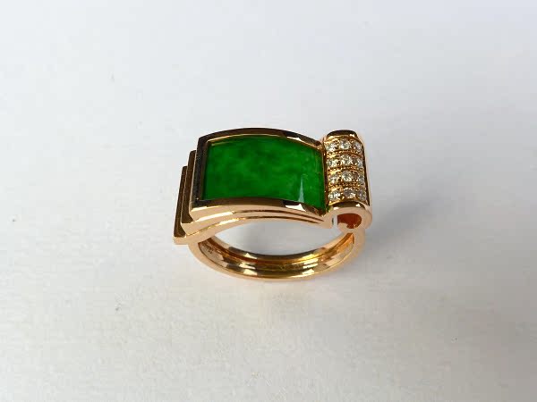 【翡翠名称】:老坑冰种阳绿翡翠戒指 镶嵌18