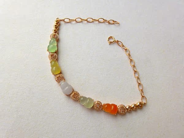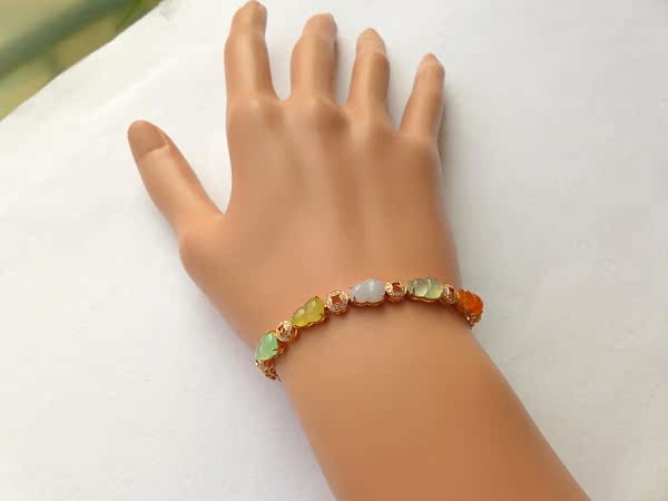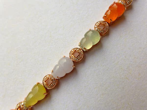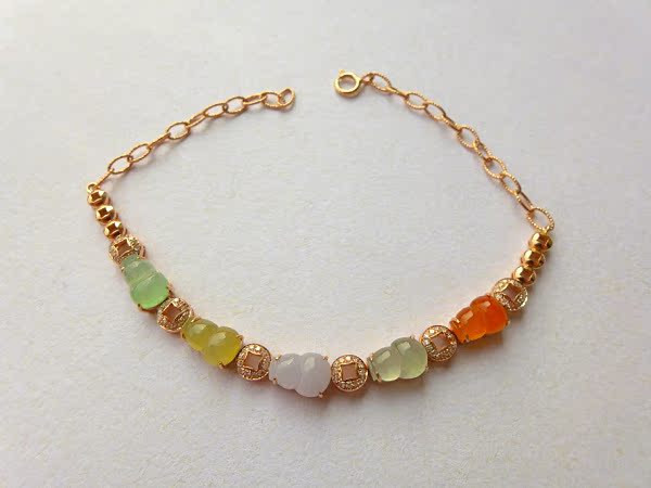 【翡翠名称】:五彩葫芦翡翠手链 镶嵌18