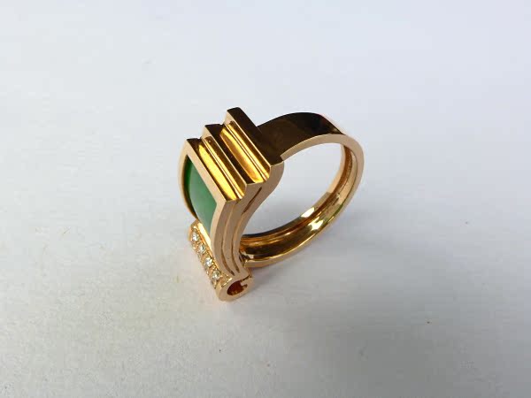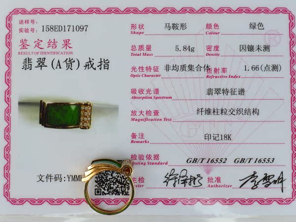 【翡翠尺寸】:内径:17.3mm。长:21.5mm。宽:20.2mm。厚:9.7mm。裸石尺寸:长:12.4mm。宽:8mm。厚:1mm。(分别取最大值,可能有轻微误差)