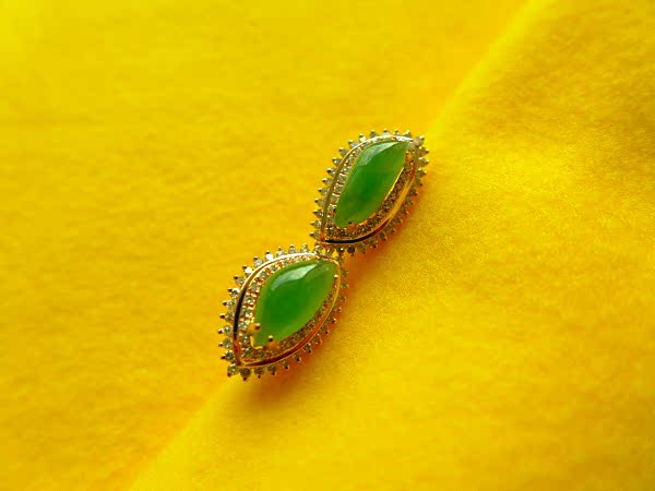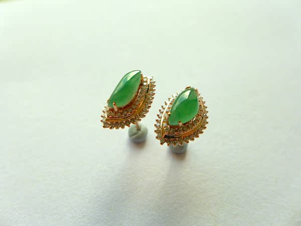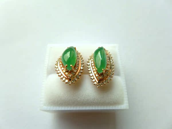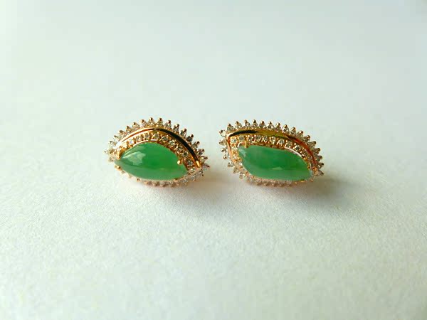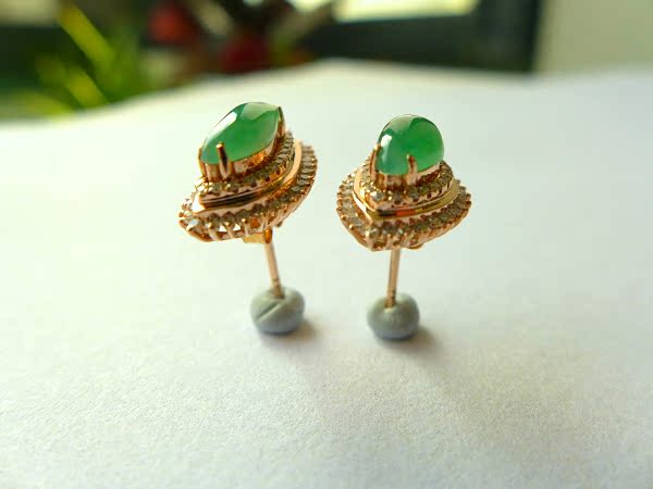 【翡翠名称】:满绿翡翠耳钉镶嵌18