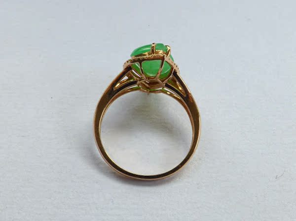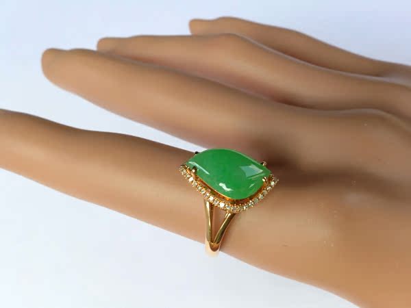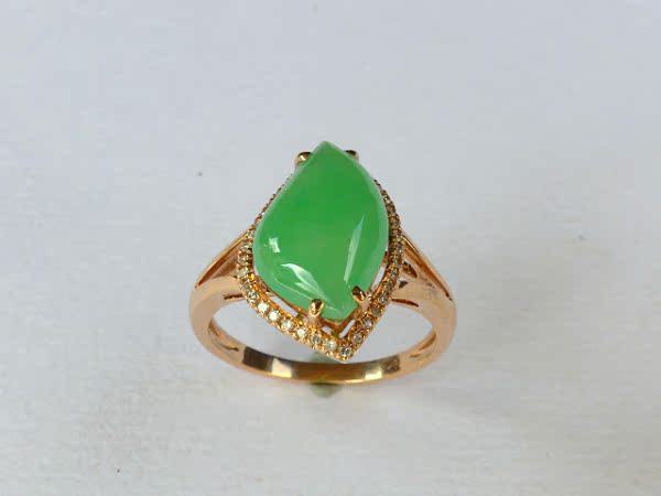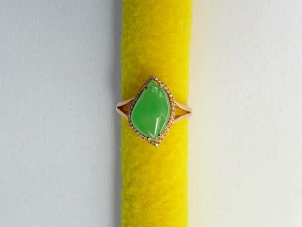 【翡翠名称】: 冰种老坑阳绿随形翡翠戒指 镶嵌18