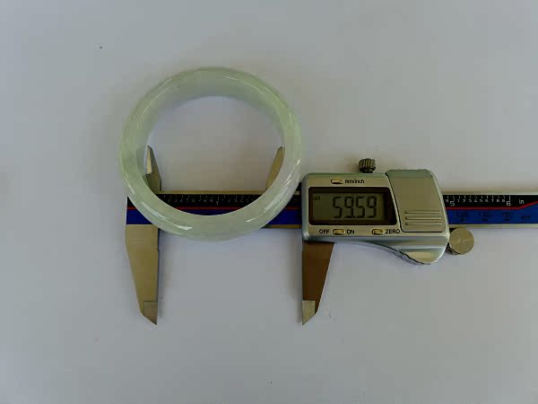 【翡翠尺寸】:内径:59.5mm。外径:77.4mm。横向厚度:16.0mm。(分别取最大值,可能有轻微误差)