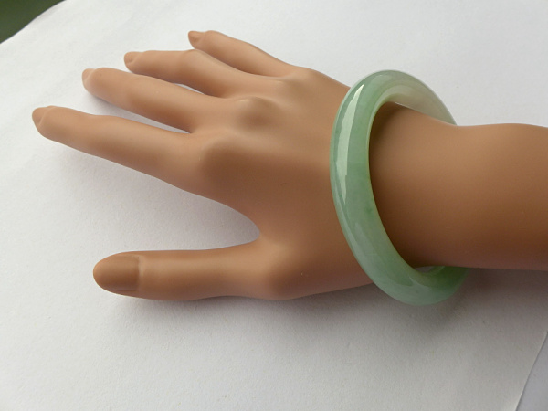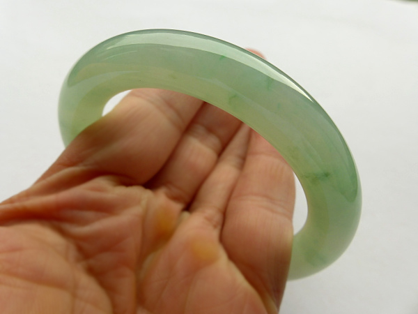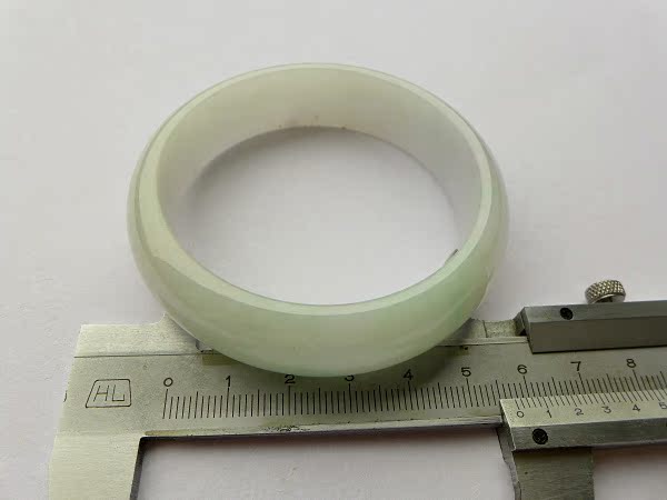 【翡翠尺寸】:内径:56.8mm。外径:77.9mm。横向厚度:10.9mm。(分别取最大值,可能有轻微误差)