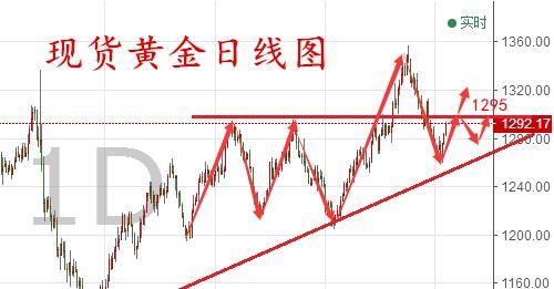技术面来看,从周五探底上涨,连续的两根阳线,加上昨日阳线,构筑了红三兵形态,典型的反转形态,后市继续做多看涨。昨日黄金回测1282一线后延续上攻,日内首先突破1285昨日高点,并且持稳延续冲高,价格在欧盘时段突破1290大关并且持强延续至晚间,慢阳上涨回撤较小,多头强势。上方压制1295-1297一线,这个位置是前期多空的强弱分界线,从近三日的走势上来看,价格定是不到此位置不调整的势头。
