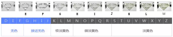 钻石4c:颜色(Colour) 钻石愈是透明无色,白色愈是能穿透,经折射和色散后更是缤纷多彩。钻石色泽分级是在专业实验室的分级环境中,由技术人员将待分级钻石与标准色泽比色石反复对比而确定。最白的钻石定为D集。钻石色泽共分为11个级别,依次分别为:D、E、F、G、H、I、J、K、L、M、N。柏瑞钻石致力于为广大消费者提供纯色美钻,只选用J色以上等级的钻石。