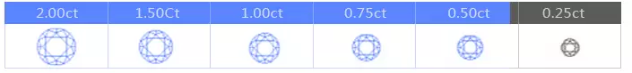 钻石4c:克拉重量(Carat) 钻石重量以克拉(又称卡)计算。1克拉=200毫克=0.2克。一克拉分为一百份,每一份称为一分。0.75克拉又称为75分,0.02克拉为2分。在其它条件近似的情况下,随着钻石重量的增大,其价值呈几何级数增长。在每一种不同的大小和形状中,都能找到品质优良的钻石,最重要的是找一颗大小适合而式样又让你喜欢的钻石。