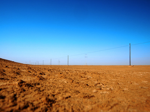 开始我们并没有注意,也根本不知道能够轻易地见到传说中的海市蜃楼。当时正是正午12:30分,我们的车子坏了,司机正在修车。我冒着酷热走下车,打着太阳伞故作安慰地站在戈壁滩上,心里清楚这样的直晒不论是阳伞还是防晒油都无济于事,但也只好听天由命罢了。