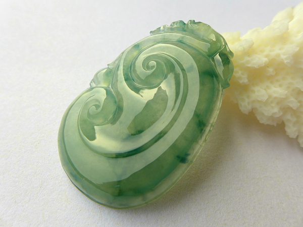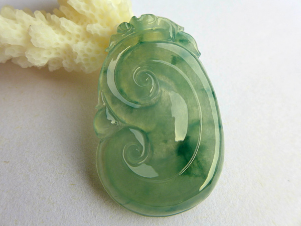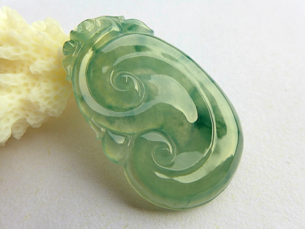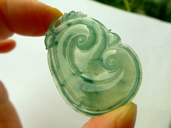 【翡翠名称】:老坑冰种飘花翡翠如意挂件 玉质冰透水头足