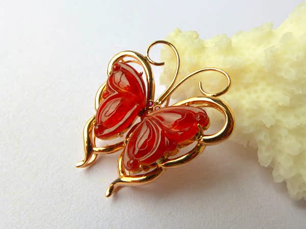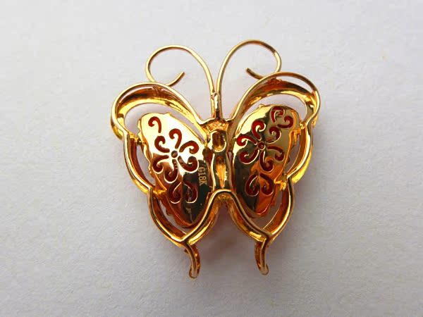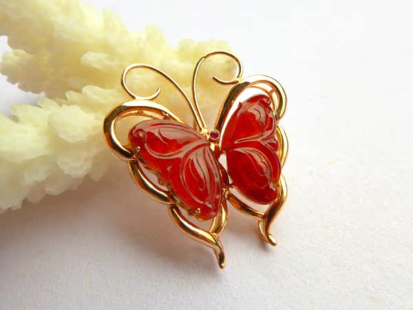 【翡翠名称】:老坑冰种帝王红翡翠蝴蝶挂件 镶嵌18