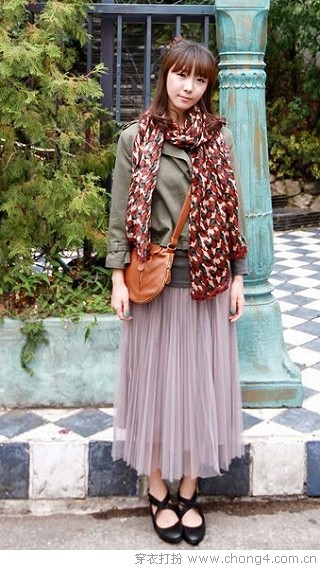 07 今年很hit的长裙在秋天仍然很有人气哦,淡淡的紫色传来令人心醉的妩媚感,一双淑女系的芭蕾鞋很可爱,一身充满青春活力的甜美搭配非常有吸引力,随意围上的围巾让你的搭配增添无数的魅力!