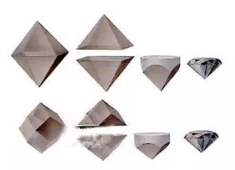 钻石实际上和劈木头差不多,沿着木材纹理就比较容易将大木头变成小劈柴,而从垂直纹理的方向劈就显得不那么容易了。就八面体金刚石而言,拥有与其8个晶面相平行的4个解理方向。