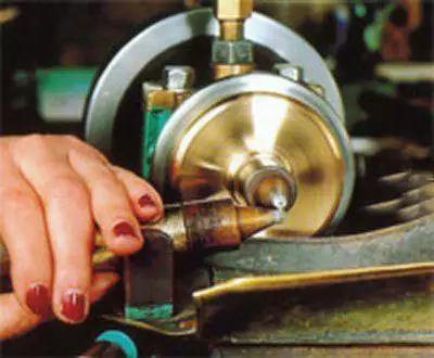 钻石毛坯按照预期的成品形状磨出一个大致的轮廓,是琢磨刻面前的预备阶段。操作者通过去除多余的材料为后续工作初步准备出亭部以及与台面相垂直的腰部。这项任务由粗磨机来完成,我们可以将其看作是一台精密的机械车床。有两种粗磨机:单轴的与双轴的,后者更多的用于颗粒较小的