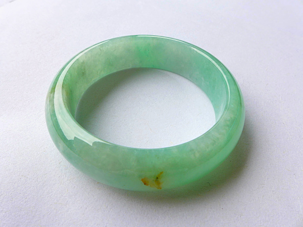 【翡翠名称】:洒金点黄翡阳绿翡翠手镯 高档翡翠手镯 58mm翡翠手镯