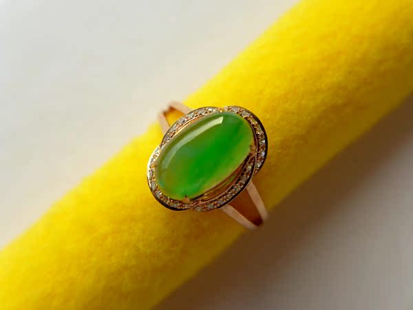 【翡翠名称】:金丝绿阳绿翡翠戒指镶嵌18