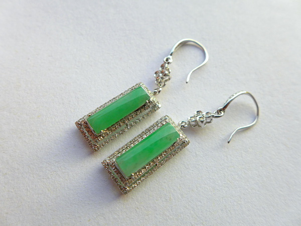 【翡翠名称】:翠绿耳环 老坑冰种翡翠镶嵌18
